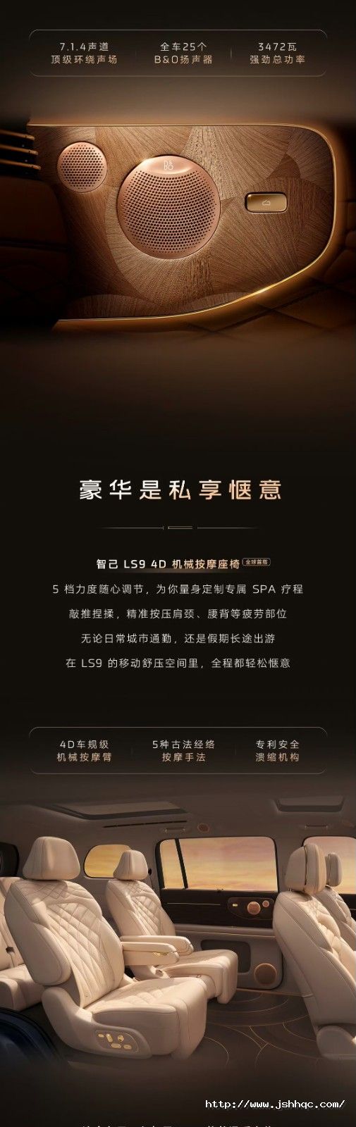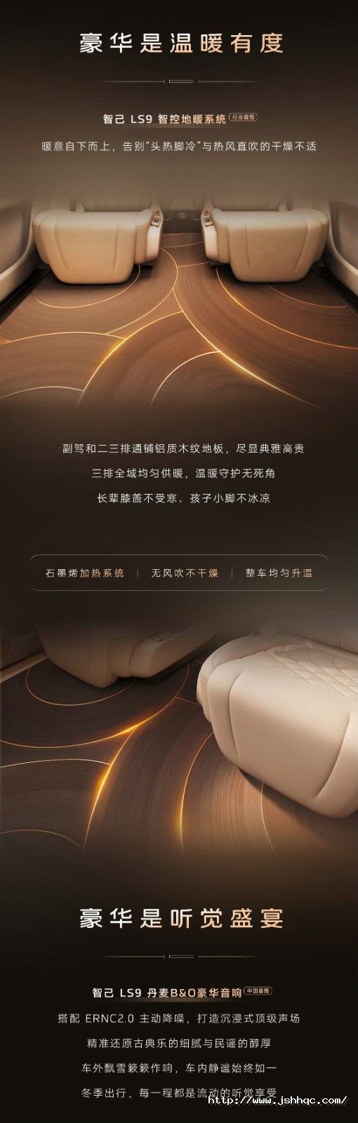上汽旗舰智己LS9 新奢华三件套行业首创智控地暖,尽享温暖奢适丹麦B&O豪华音响,如沐天籁之声4D机械按摩座椅,旅途轻松惬意让可感知的真豪华,能够触手可及买增程先看智己