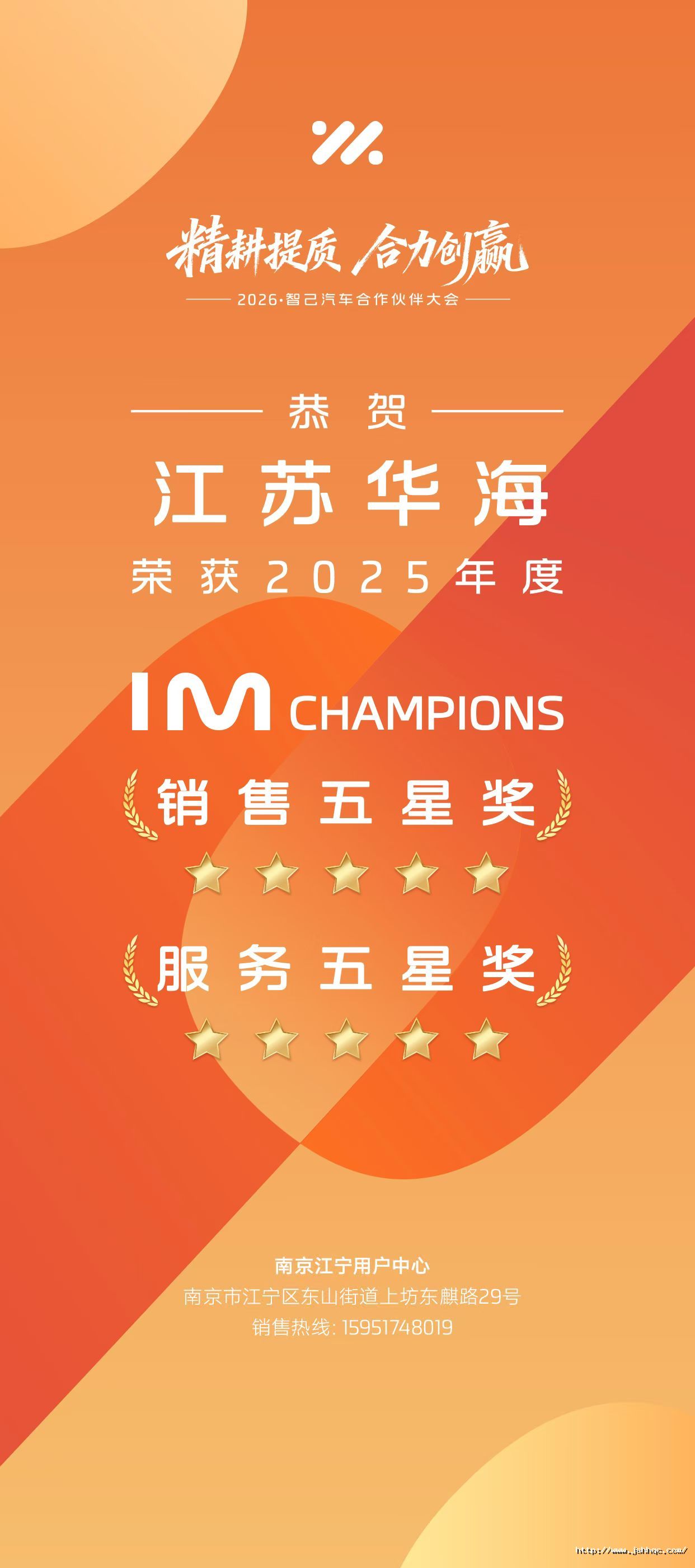 江苏华海汽车集团 荣获2025年度智己品牌销售五星奖 服务五星奖